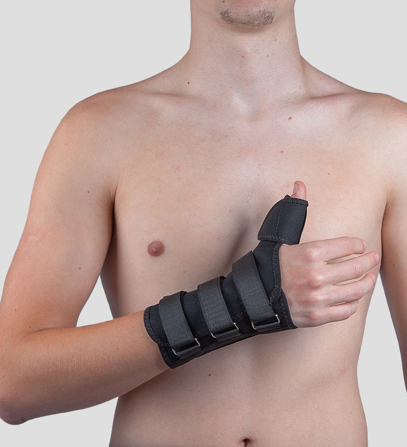 Utilizada em casos de lesões traumáticas, tenossinovites e demais afecções em que haja necessidade de imobilização do punho e polegar.
